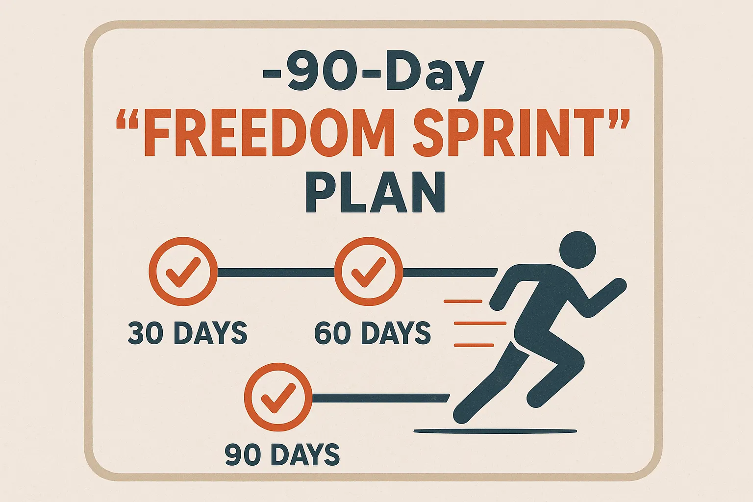 You’ll build a 90-Day “Freedom Sprint” Plan with clear priorities, so you know exactly what to focus on first to gain time and traction.